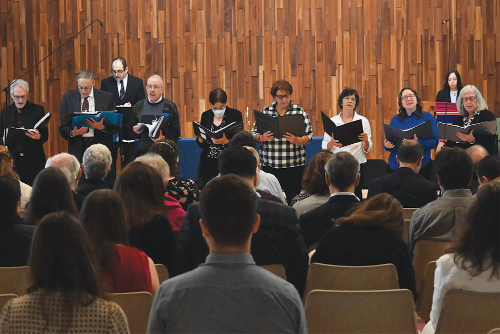 Then come join us at the Machar choir! No previous experience is necessary – just a willingness to show up for rehearsals and sing! We are a small but mighty group [under a dozen], and we meet in members’ homes in DC or Maryland, with regular rehearsals – once or twice a week – starting a few months before the High Holidays. We also meet and rehearse at various times the rest of the year for other events – for example, singing at the Hanukkah party or the Machar Passover seder, or at the annual Machar coffeehouse.